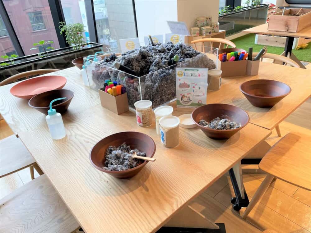 衣類が肥料になる工程を体験できるワークショップスペース