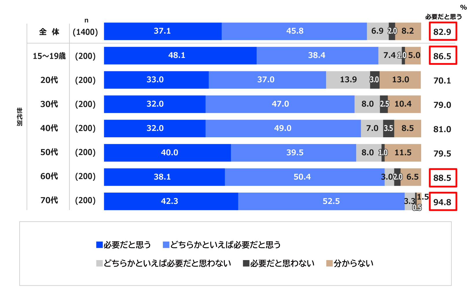 今回の調査で特に注目すべきは、この「適応」を「必要だと思う」と回答した人が、全体の82.9%という非常に高い割合に達したことです。